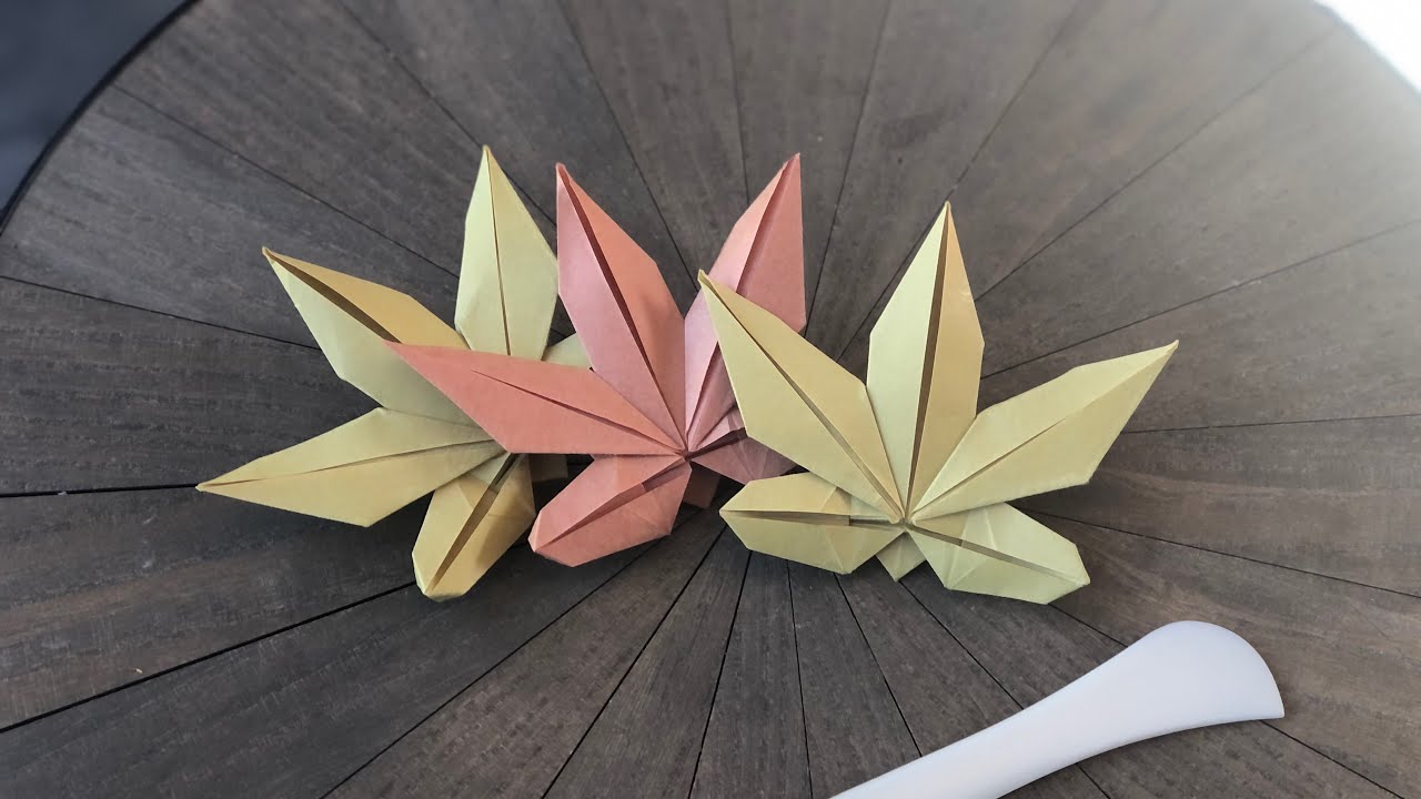 タイトル折り紙で作る紅葉|秋の飾りにぴったりのもみじの折り方 【一枚折り】