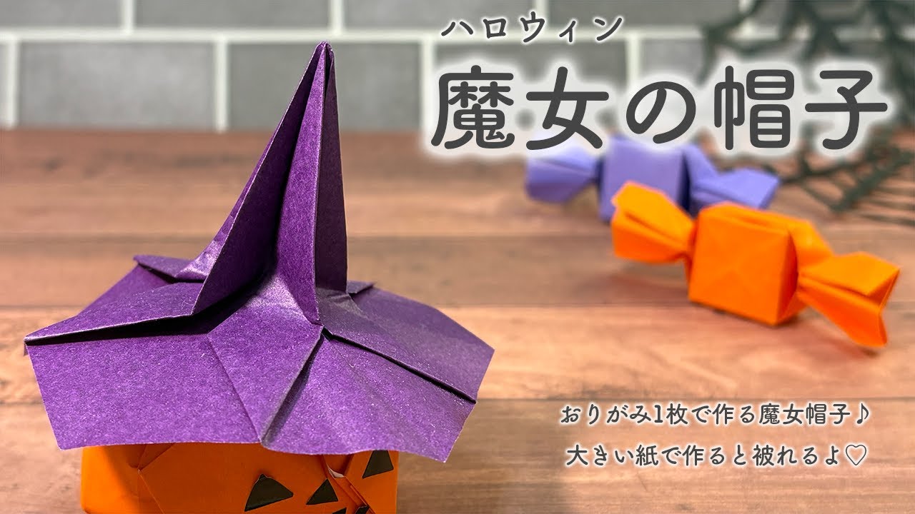 【おりがみ】折り紙1枚で作る 魔女の帽子 ハロウィン♡ – ハンドメイドホーム POMPELMO CHANNEL  •••ぽんぺるもちゃんねる•••