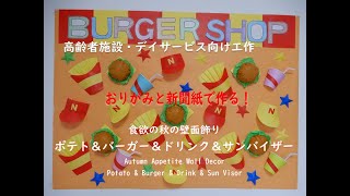 | タイトル | 【工作ネタ】折り紙で作るポテト&チーズバーガー&ドリンク&サンバイザーCheeseburger & Fries & Drink & Sun Visor(11月食欲の秋/壁面飾り)(高齢者レク デイ) |