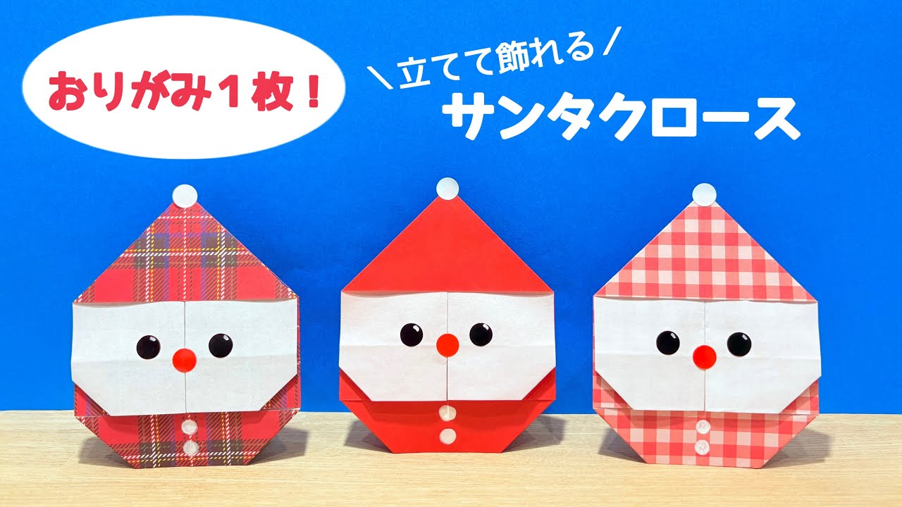 タイトル【折り紙1枚でできる】簡単!立てて飾れる『サンタクロース』の作り方 ◇Origami Santa Claus figurine クリスマス 冬 可愛い 置物 winter christmas◇