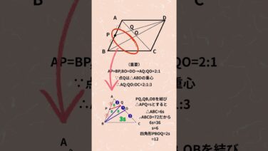 冬 冬に向けて46_R7.10.7朝。おはようございます。今日は平行四辺形の中にある部分の面積を求める問題です。昔からの定番問題です。#高校入試#数学 #平行四辺形#重心 – ミッチー 出典:YouTube / ミッチー 2025.10.07 冬
