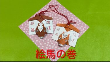 秋 【折り紙 オリジナル】 絵馬の巻 馬 午年 2026 おりがみ 年賀状 origami 十二支 1枚 – sun 0938