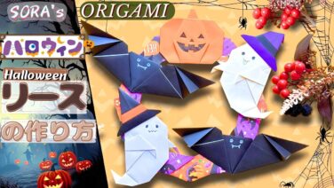 秋 【ハロウィンの折り紙 リースの作り方】かぼちゃとおばけ、こうもり付きの飾り【ソラ】 – 【Sora’s Origami】Paper crafts 出典:YouTube / 【Sora's Origami】Paper crafts 2025.10.18 秋